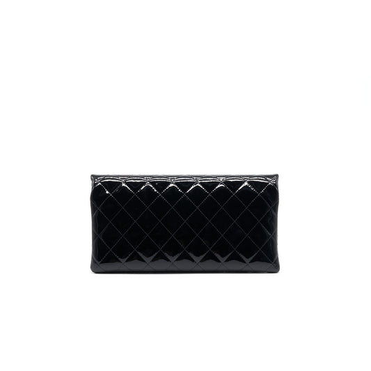 Chanel Patent Leather Fold Over Clutch Black SHW