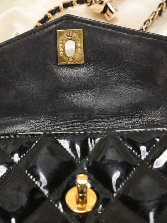 Chanel Patent Leather Tote Bag Vintage Quilted Black