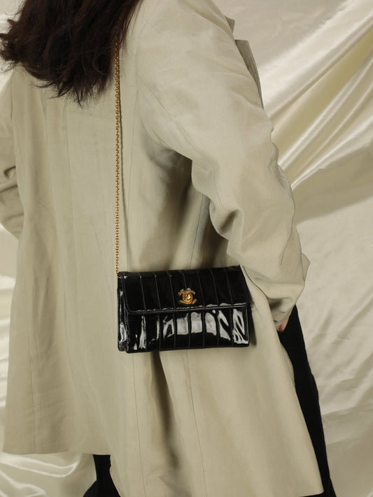 Chanel Patent Quilted Golden Class Double CC Wallet on Chain (SHG-0mnHhG)