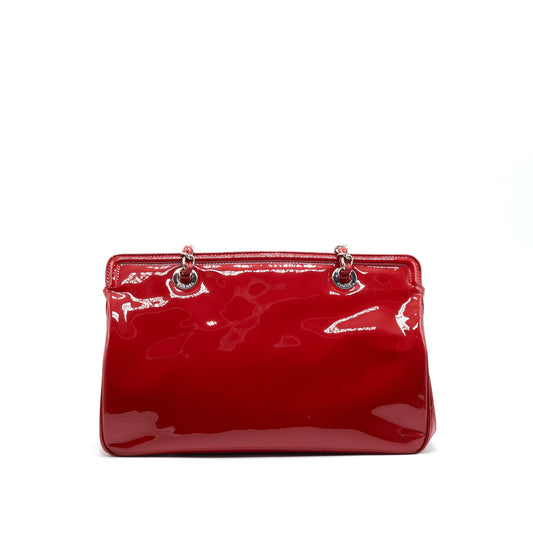 Chanel Patent Leather Tote Bag With Chain In Red SHW