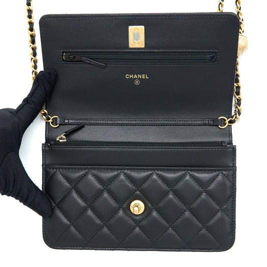 Chanel Pearl Crush Wallet on Chain Lambskin Black GHW (Microchip)