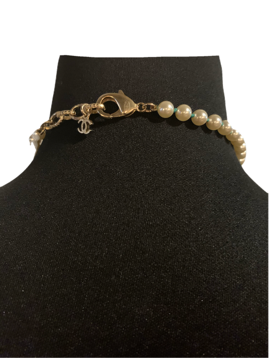 Chanel Pearl Necklace With Heart Pearl Crystal CC Logo LGHW