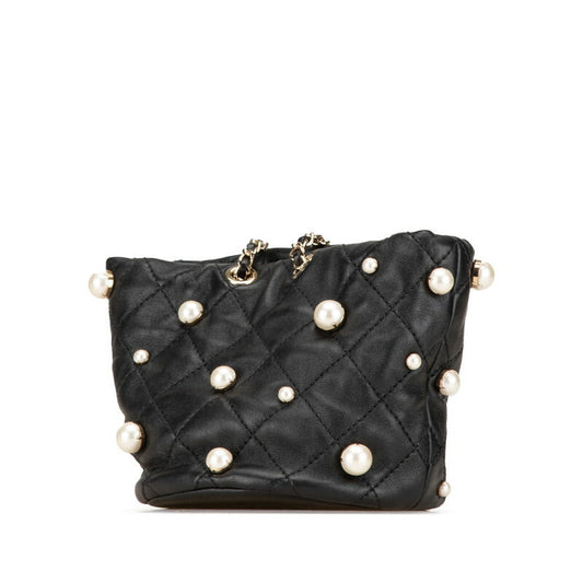 Chanel Pearl Mini Shoulder Bag Black Lambskin