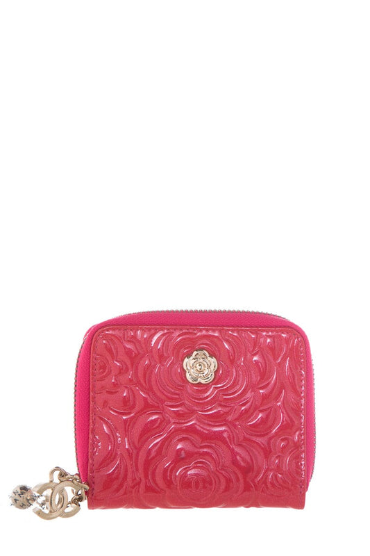 Chanel Pink Camellia Embossed Patent Leather Wallet