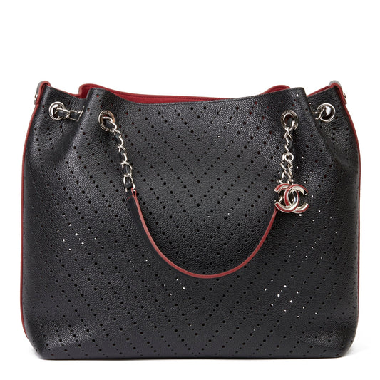 Chanel Perforated Caviar Leather CC Shopping Tote (SHF-23460)