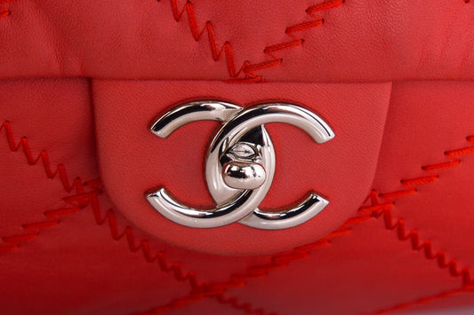 Chanel Poppy Red 2011 East West Soft Sided Single Flap Bag
