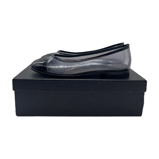 CHANEL Pumps Shoes Velor 38 Black CC bs10973