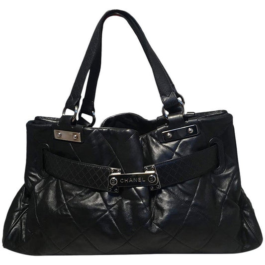Chanel Quilted Black Leather Latch Front Tote Bag