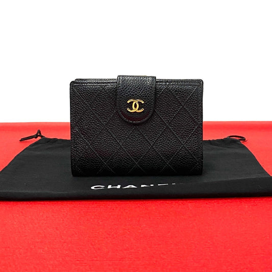 Chanel Quilted Caviar Clasp Purse Leather Short Wallet