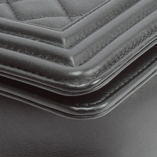 CHANEL Quilted Boy Bag w/Logo Handle Black