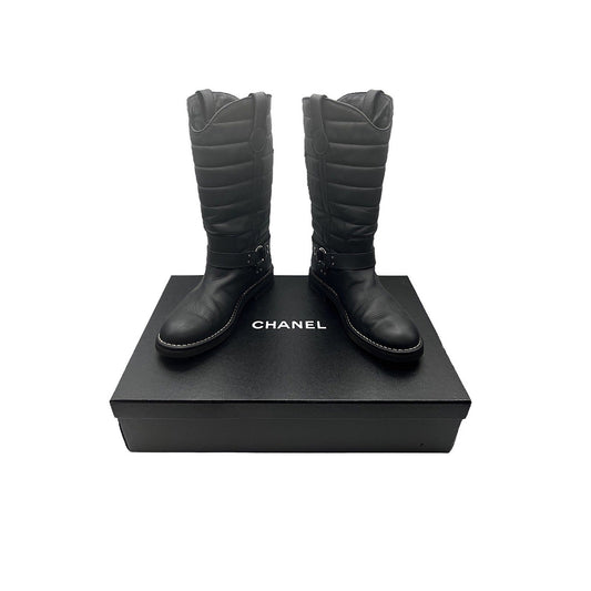 Chanel Quilted Calfskin Star Biker Boots Sz 40