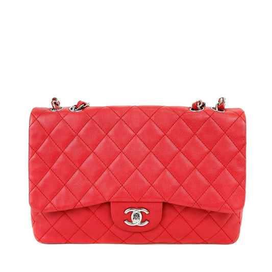 Chanel Red Jumbo Caviar Double Flap Handbag
