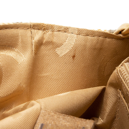 CHANEL Raffia Chain Flap Shoulder Bag Leather Beige CC am1414gA