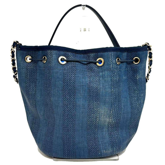 Chanel Raffia Leather Drawstring Shoulder Bag A57536