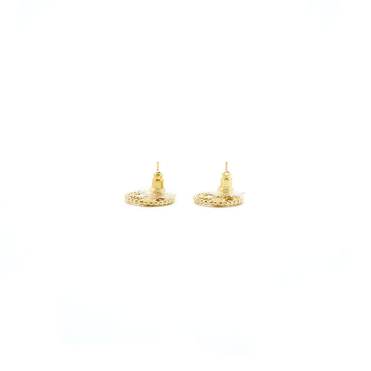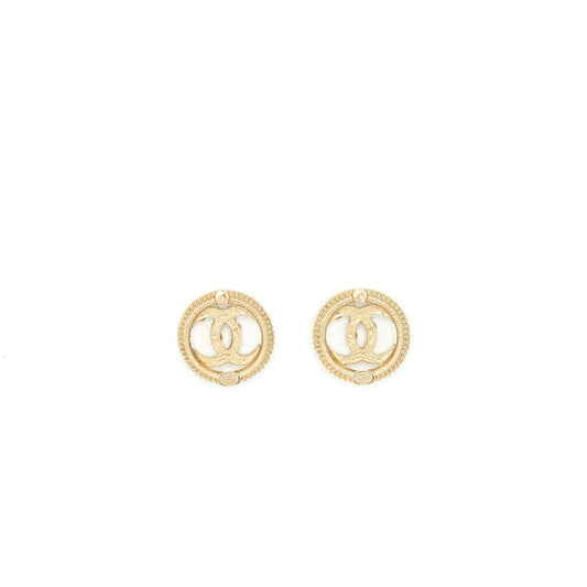 Chanel Round CC Pearl with Crystal Earrings Light Gold Tone
