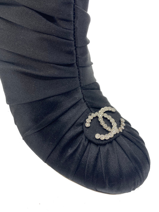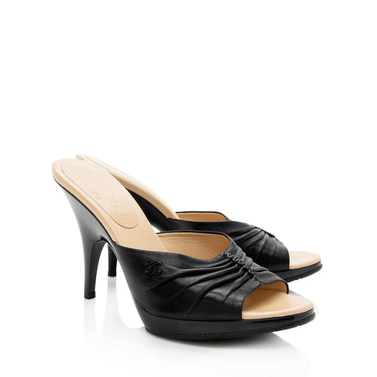 Chanel Ruched Leather Slide Mules - Size 7 / 37 (SHF-18120)