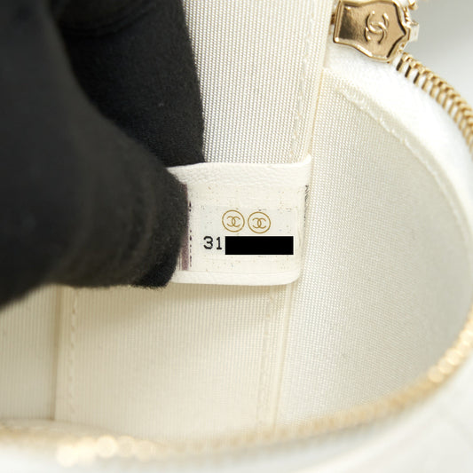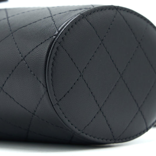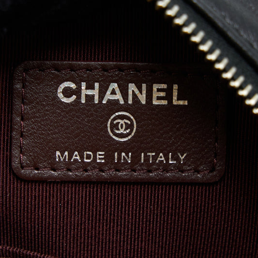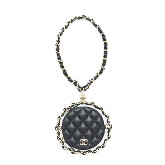 Chanel Round Vanity Case With Chain Lambskin Black LGHW