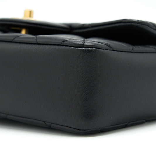 Chanel seasonal Mini Rectangular Flap Bag Heart Charm Chain Lambskin Black GHW (Microchip)