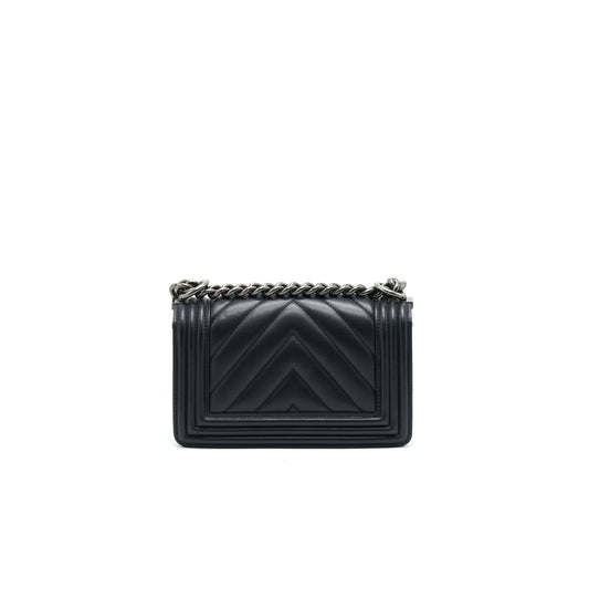 Chanel Small Chevron Leboy Bag Calfskin Black With SHW