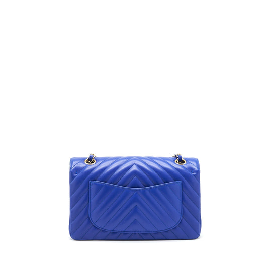 Chanel Small Classic Flap Bag Chevron Lambskin Blue LGHW