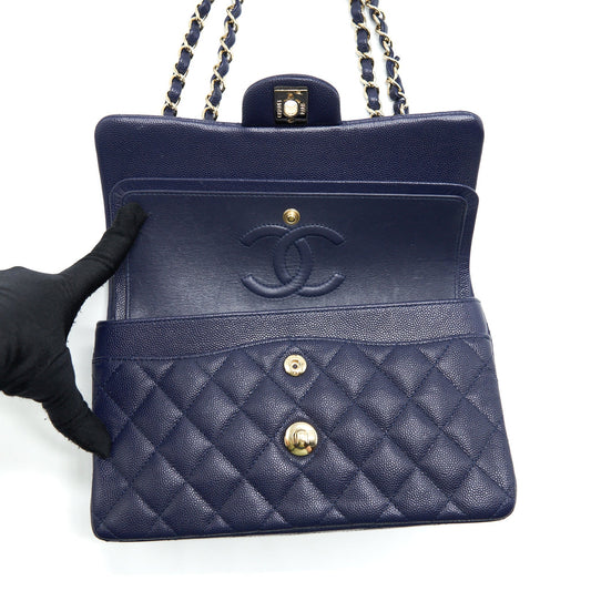 Chanel Small Classic Flap Bag Caviar Dark Blue LGHW