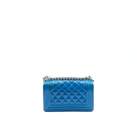 CHANEL SMALL LE BOY BAG IN PATENT LEATHER BLUE SHW