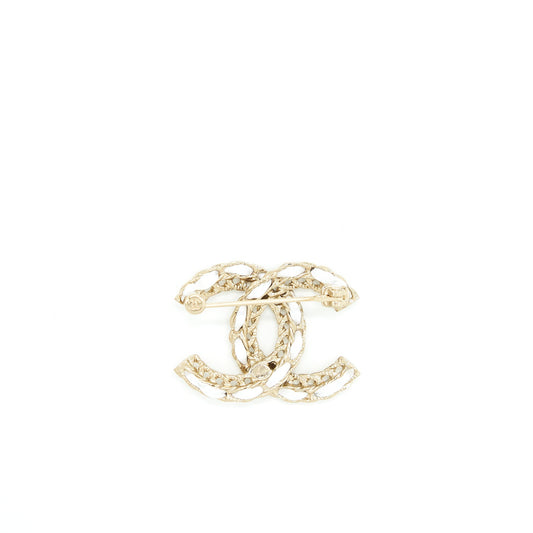 Chanel Small Leather Chain CC Logo Brooch White/Light Gold Tone