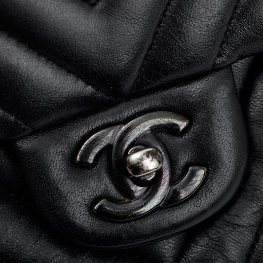 Chanel So Black Chevron Quilted Lambskin Leather Classic Medium Double Flap Bag