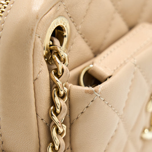 Chanel Small Vertical Camera Bag With Chain Lambskin Beige LGHW