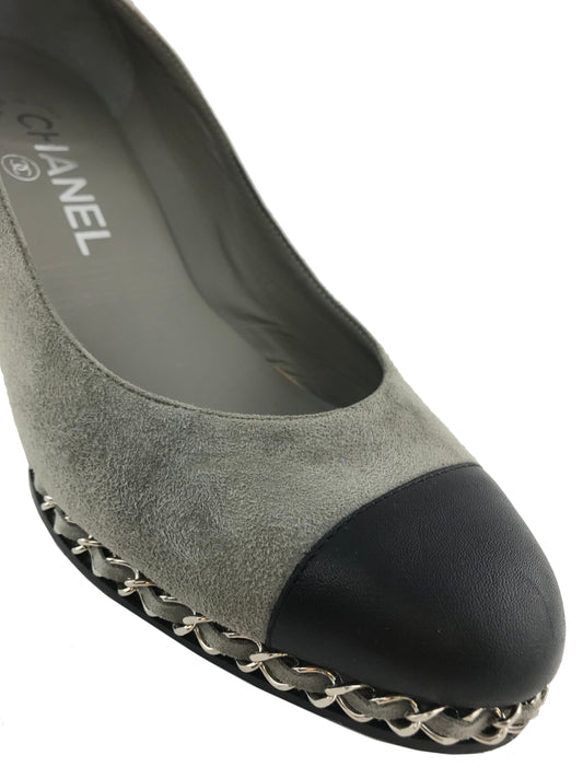 Chanel Suede Leather Cap Toe Chain Trim Wedge Size 7