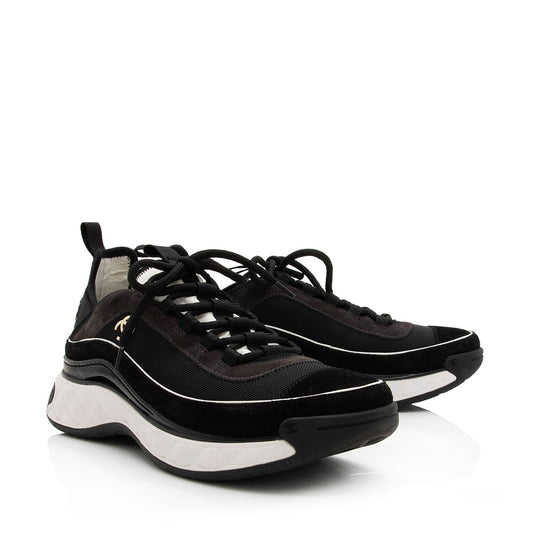 Chanel Suede Calfskin Quilted Fabric CC Sneakers - Size 10 / 40 (SHF-A0Zb1v)