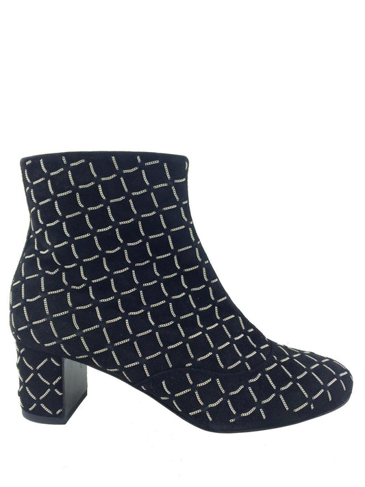 Chanel Suede Silver Chain Link Ankle Boots Size 7.5
