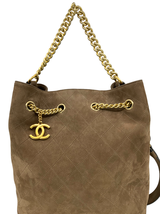 Chanel Suede Matelasse Logo Chain Shoulder Bag