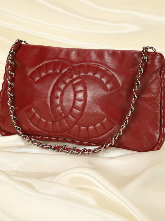 Chanel Taupe Limited Edition Accordion Pleat Lambskin Leather Shoulder Bag