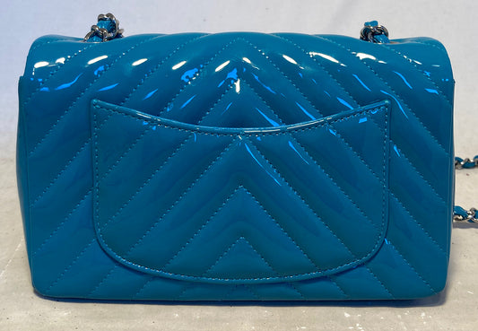 Chanel Teal Chevron Quilted Patent Leather Mini Classic Flap