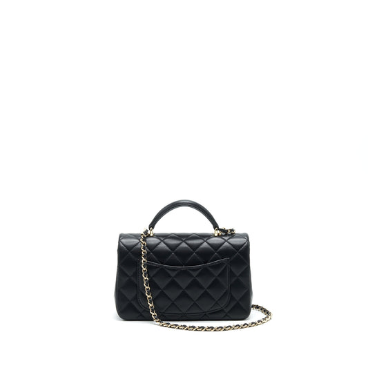 Chanel Top Handle Mini Flap Bag Lambskin Black LGHW