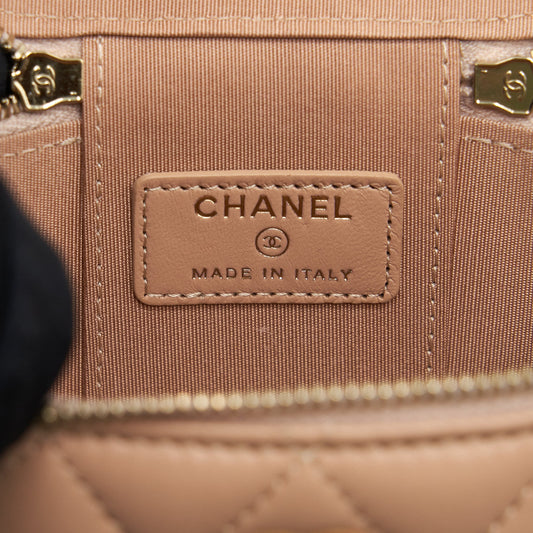 Chanel Top Handle Mini Vanity On Chain Lambskin Beige GHW