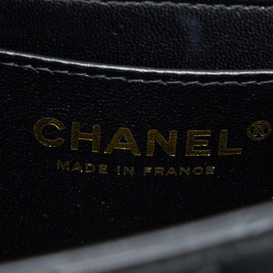 Chanel Top Handle Mini Flap Card Holder Lambskin Black GHW