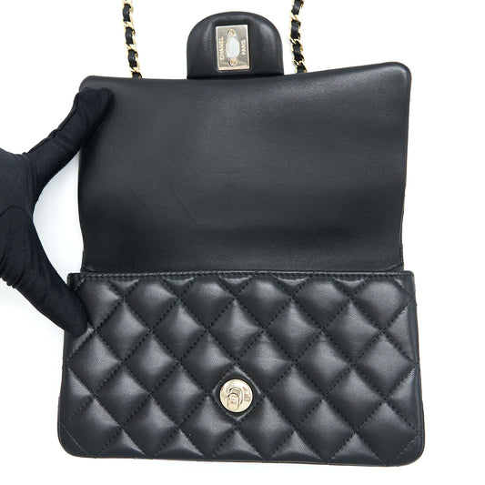 Chanel Top Handle Mini Rectangular Flap Bag Lambskin Black LGHW (Microchip)