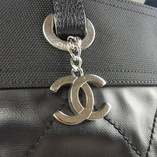 CHANEL Tote Bag Canvas White Black Silver CC bs22011