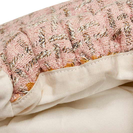 Chanel Tweed Chain Shoulder Bag Pink Brown