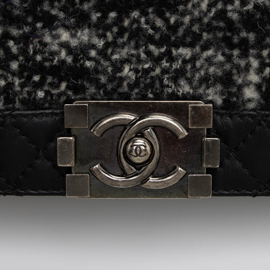 Chanel Tweed Calfskin Paris Dallas Enchained Medium Boy Bag (SHF-JY2dym)