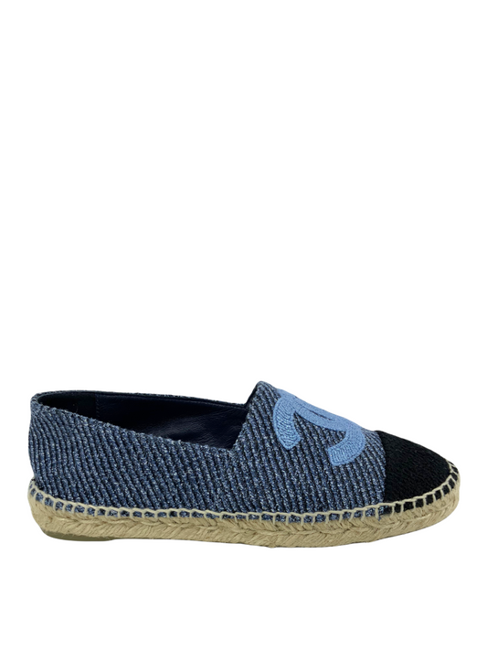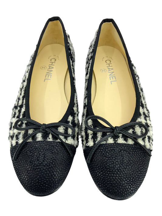 Chanel Tweed CC Logo Cap Toe Ballerina Flats Size 8