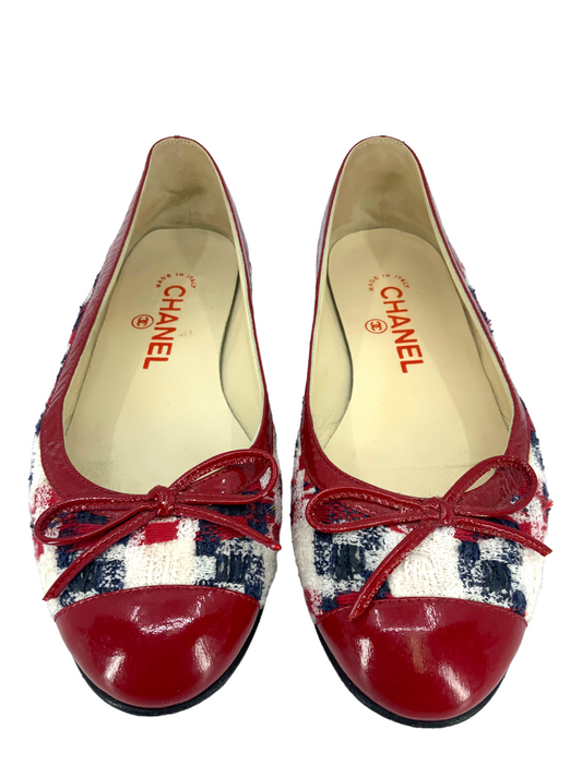 Chanel Tweed and Patent Leather Cap Toe Ballet Flats Size 7