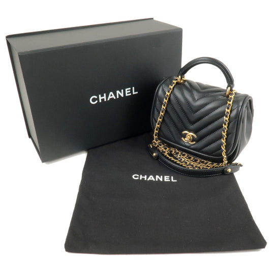 CHANEL V Stitch Hand Bag Leather Black CC bs7027