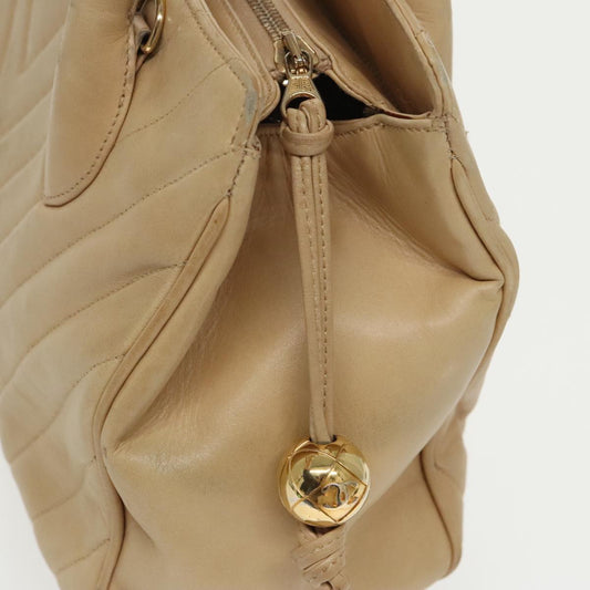 CHANEL V Stitch Hand Bag Leather 2way Beige Gold CC yk14320