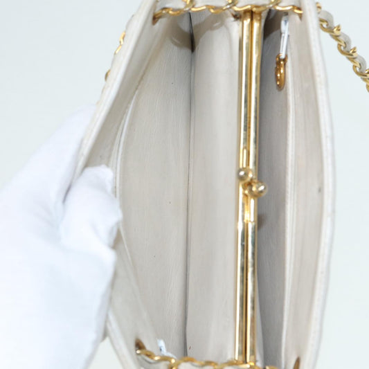 CHANEL V Stitch Chain Hand Bag Leather White CC yk14103