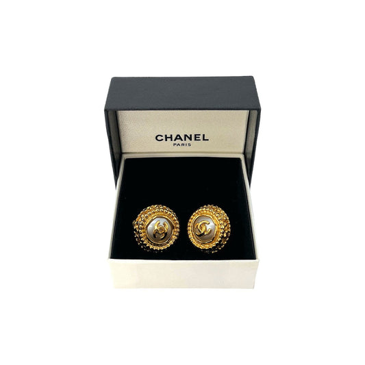 CHANEL Vintage CC Logo Round Clip On Earrings