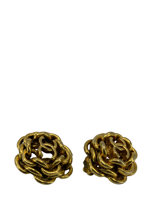 Chanel Vintage CC Logo Chunky Links Clip On Earrings