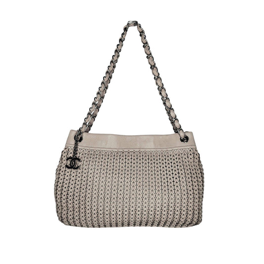 Chanel Vintage CC Charm Beige Woven Leather Tote